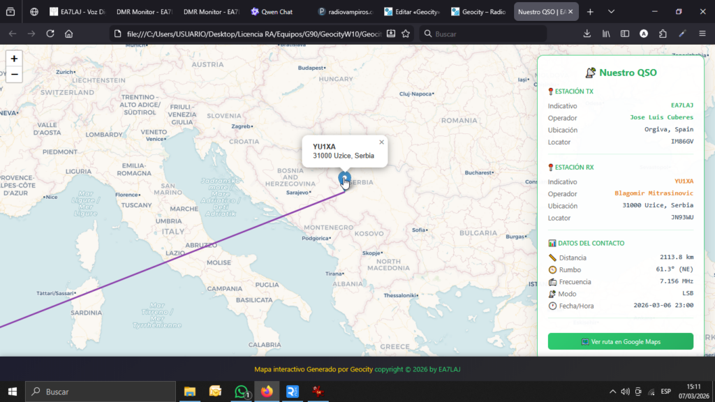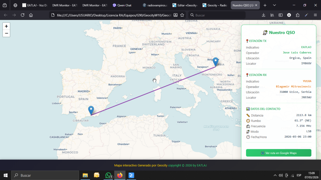 Mapas interactivos: Visualiza tus QSOs sobre mapas, con rutas, distancias y localizaciones exactas, haciendo más fácil analizar tus contactos y ubicaciones.